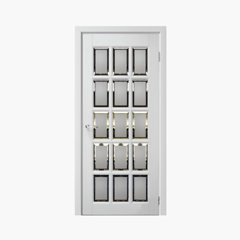 Дверное полотно Английская решетка 15 Белый жемчуг 600С сатинированный фацет