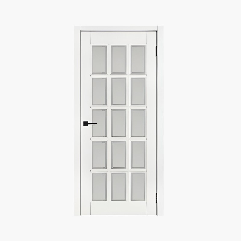 Дверное полотно Английская решетка 15 Белый жемчуг 900С сатинированный фацет