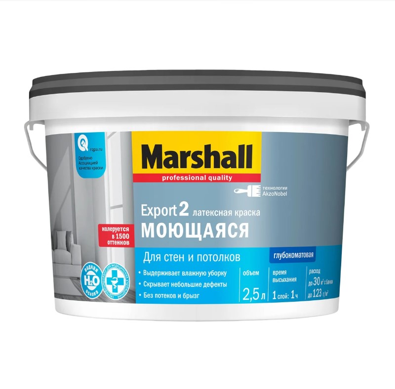 Отзывы о товаре Краска в/д Маршал Экспорт-2 Мастерлайн д/стен и потолков BW 2,5 л