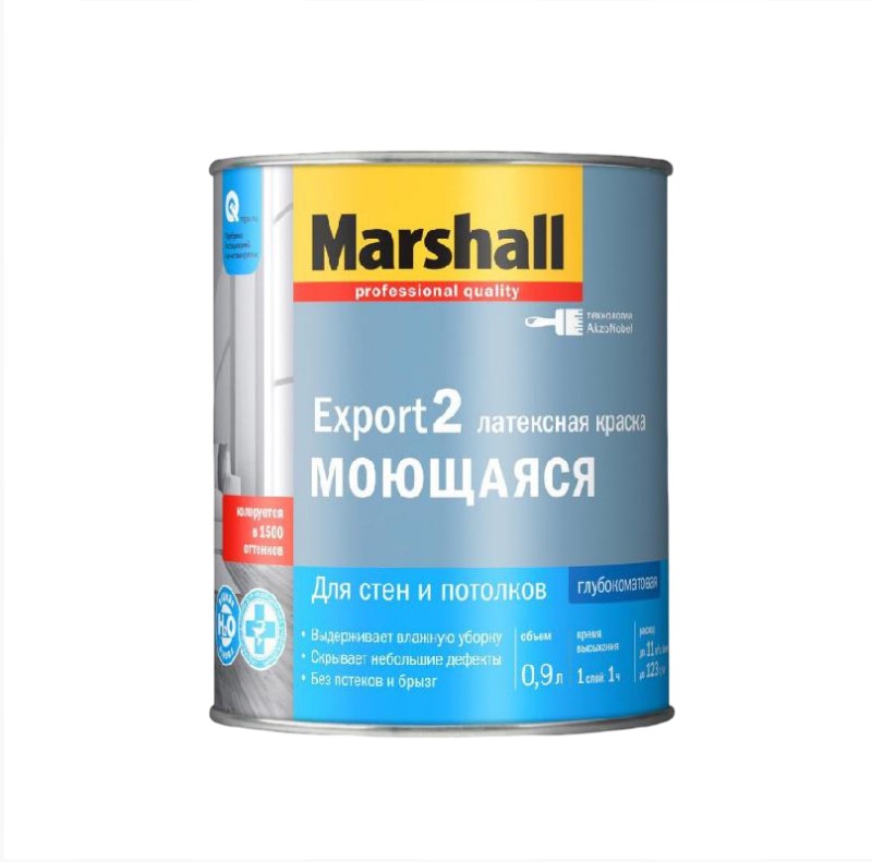 Характеристики товара «Краска в/д Маршал Экспорт-2 Мастерлайн д/стен и потолков ВС 0,9 л»