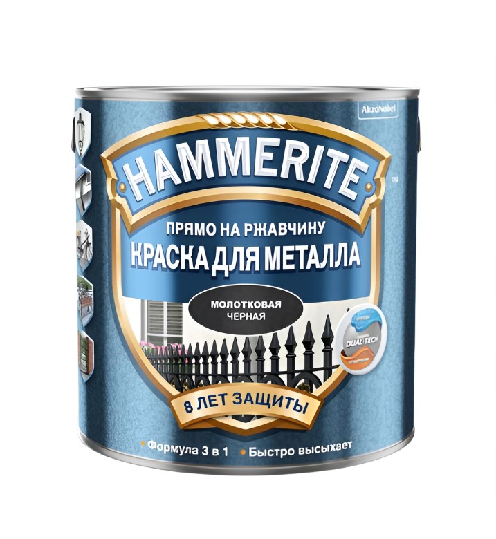 Краска молотковая Hammerite предназначена для покраски металлических поверхностей. Наносить ее можно прямо на ржавую неподготовленную поверхность заборов, ворот, решеток, садовой мебели. При правильном соблюдении технологии нанесения краска будет защищать окрашенную поверхность от коррозии в течение 8 лет.
