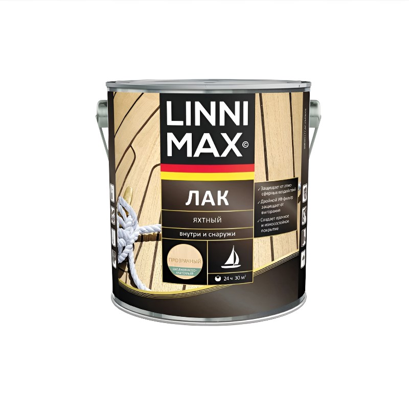 Характеристики товара «Лак алкид LINNIMAX Яхтный шелк-матовый 9 л»