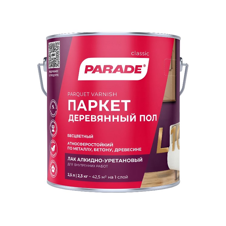 Характеристики товара «Лак алкид PARADE L10 для паркета и полов глянец 0,75 л (0006097)»