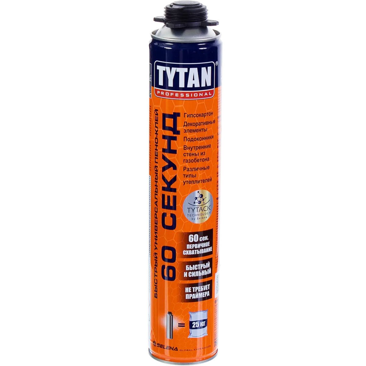 TYTAN 60 Секунд представляет собой многоцелевой пено-клей с высокой адгезией ко многим материалам и основаниям. Уникальная формула на основе TYTACK технологии дает быстрое начальное схватывание после 60 секунд без расширения, что обеспечивает стабильность склеиваемых элементов и предотвращает их деформацию.