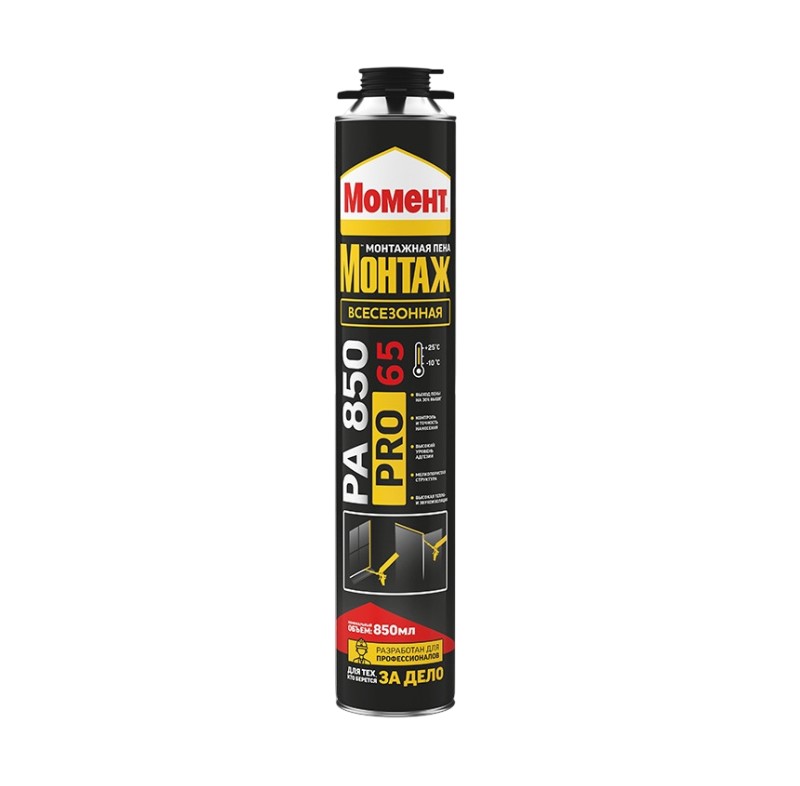 Монтажная пена Момент Монтаж Всесезонная Стандартная представляет собой готовую к применению однокомпонентную полиуретановую пену, затвердевающую под воздействием влажности воздуха. Применяется при температуре воздуха до -10оС.