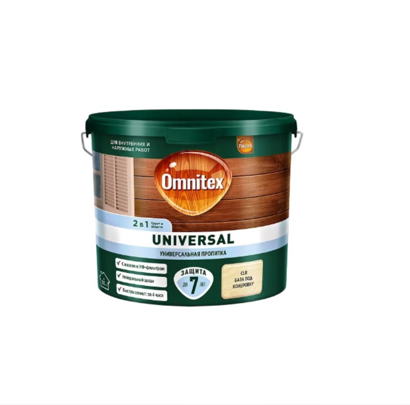 Характеристики товара «Пропитка Омнитекс универсал база под колеровку 2в1 пропитка для древесины 2,5 л»