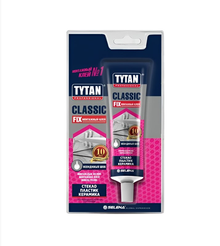 Клей монтажный Prof Classic Fix марки Tytan Professional представляет собой многоцелевой клей широкого спектра действия на основе каучука. Применяется для ремонтных, монтажных, работ. Отличается высокой влагостойкостью, повышенной адгезией к большинству типов строительных оснований: бетон, металл, кирпич, штукатурка, древесина, пластик. После отвердения образуется прозрачный, эластичный шов. Используют Prof Classic Fix для приклеивания элементов конструкции из ПВХ, древесины, полиуретана, металлов между собой и к различным основаниям.