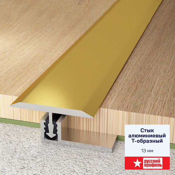Характеристики товара «Порог стык Т-обр гибкий 13 мм 2,5 анодированный золото»