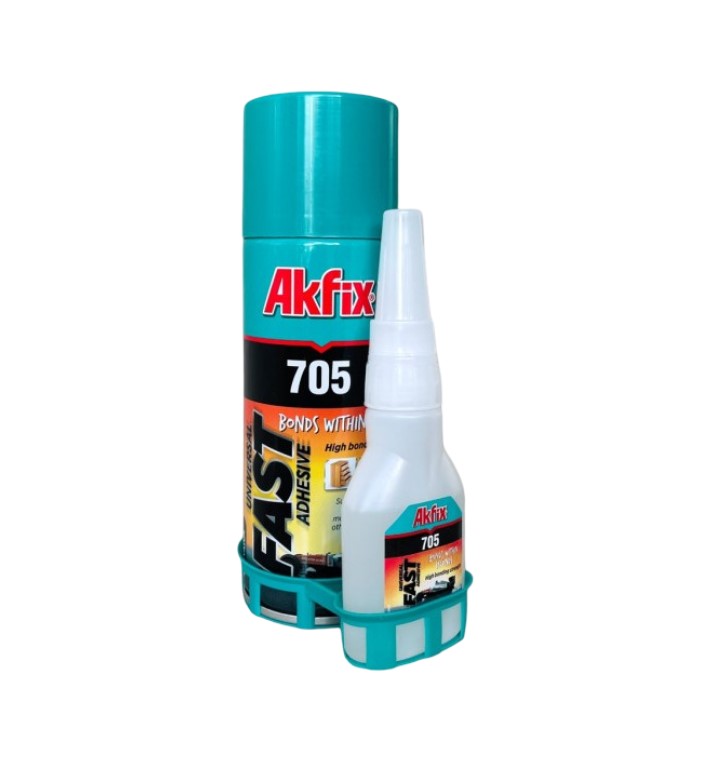 Akfix 705 – набор, состоящий из быстро полимеризующегося клея высокой вязкости на цианокрилатной основе и аэрозоля-активатора. AKFIX 705 высококачественный двухкомпонентный готовый к применению, универсальный быстро полимеризующийся клей, на цианокрилатной основе.
