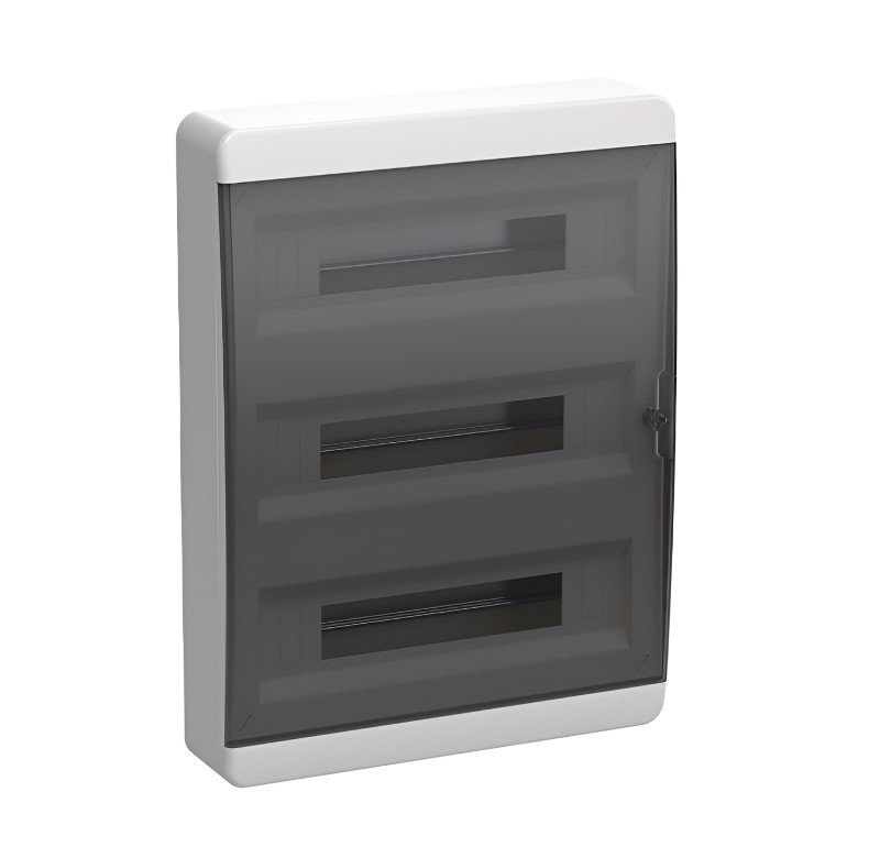Характеристики товара «Бокс TEKFOR ЩРН-П-54 навесной пластик черная прозрачная дверь IP41»