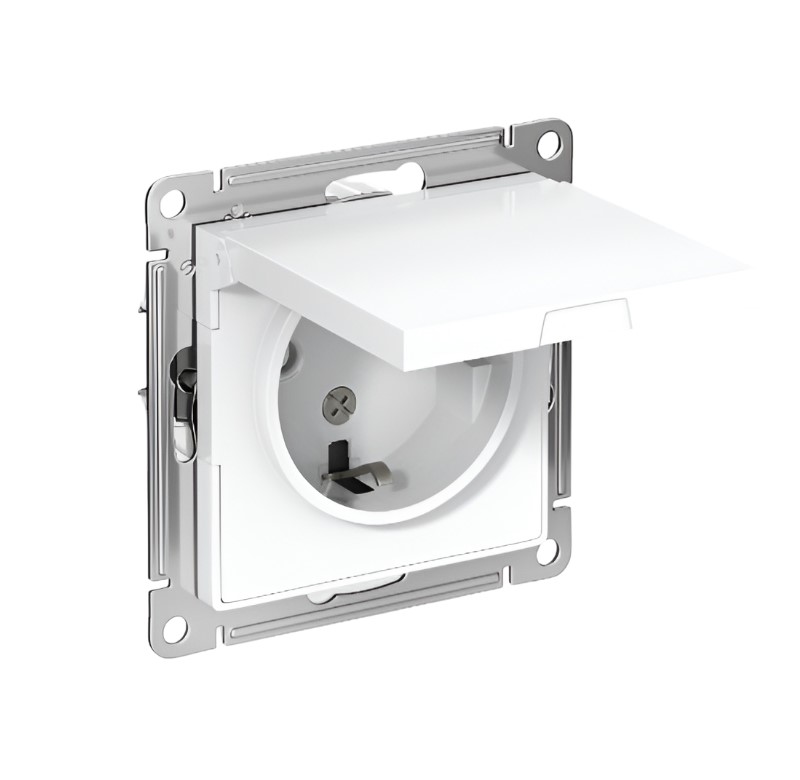 ATLASDESIGN РОЗЕТКА с заземлением 16А механизм Белый со шторками с крышкой
